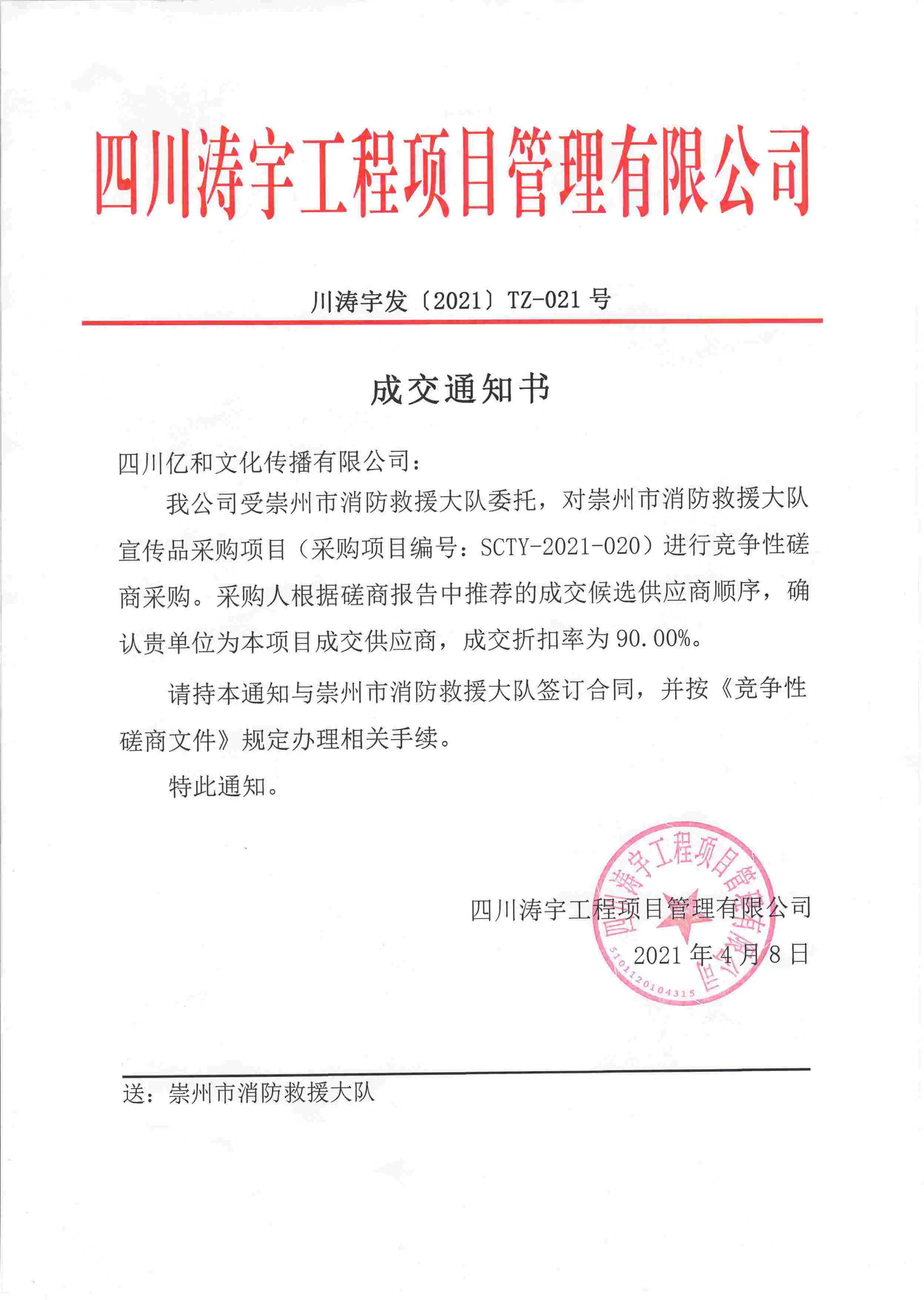【喜訊】公(gōng)司中(zhōng)标2021年“成都市崇州市消防救援大隊宣傳品采購(gòu)項目”!