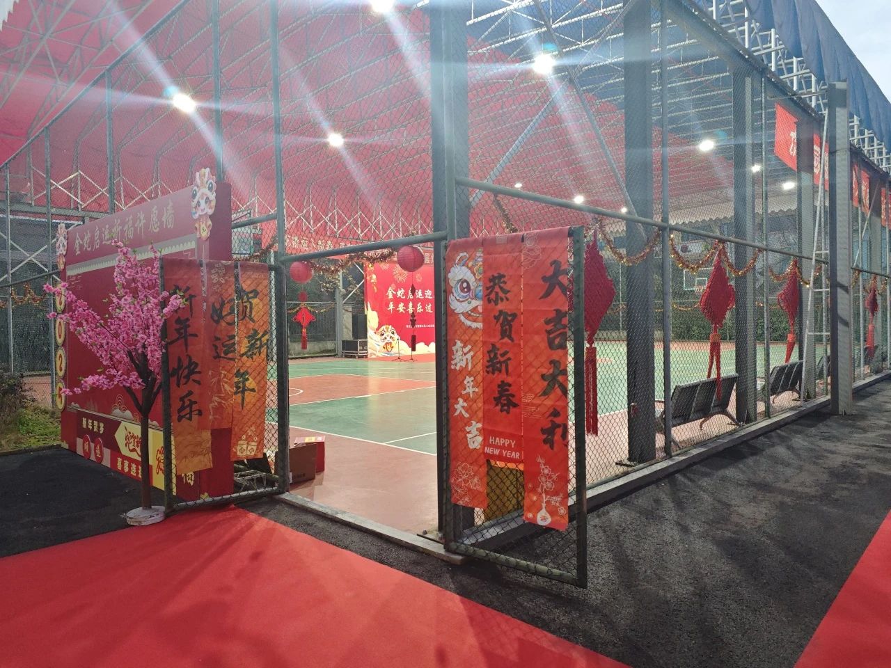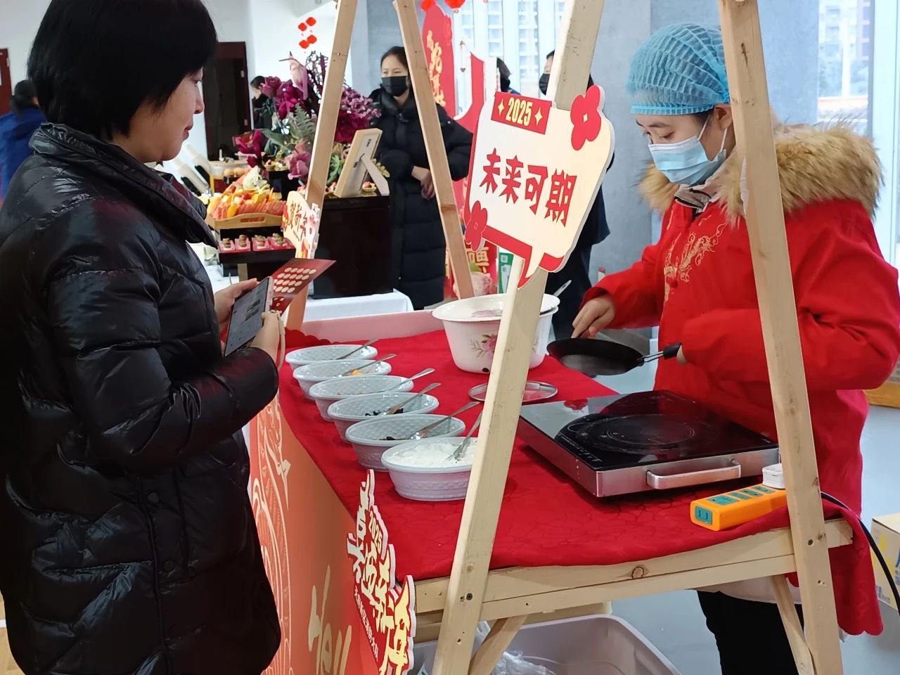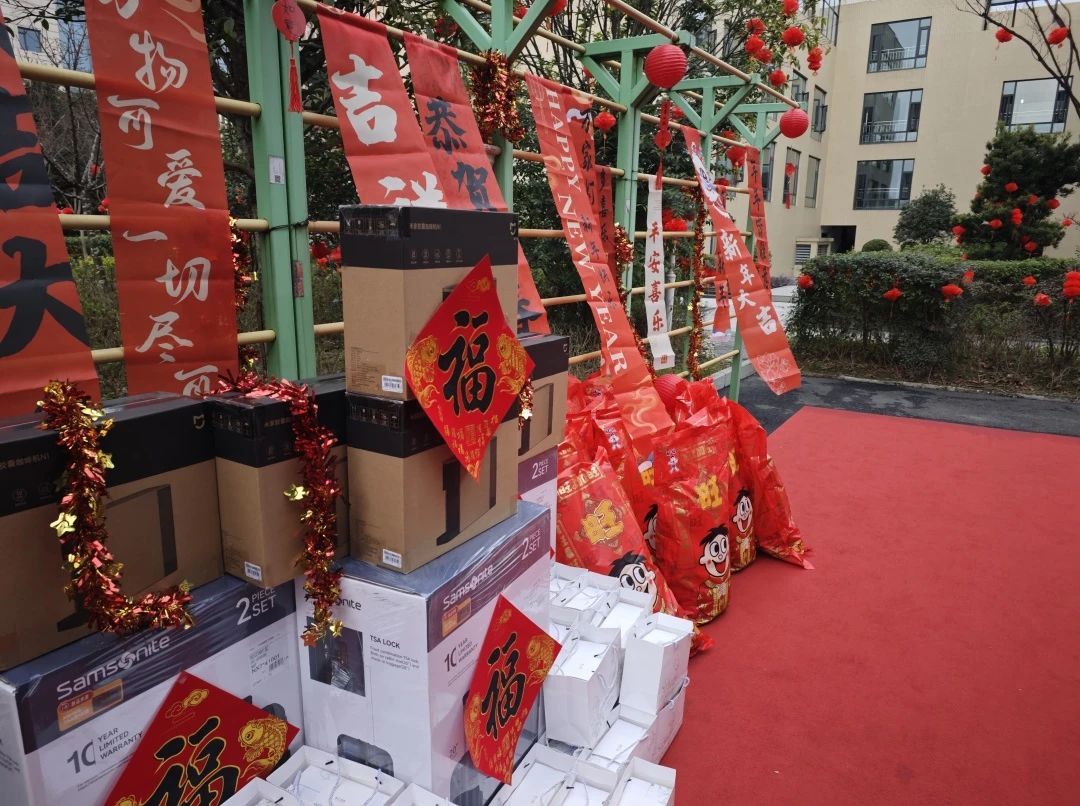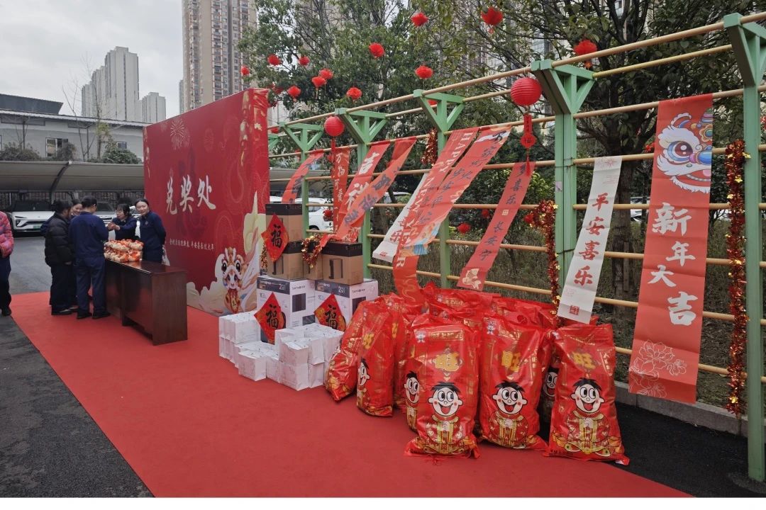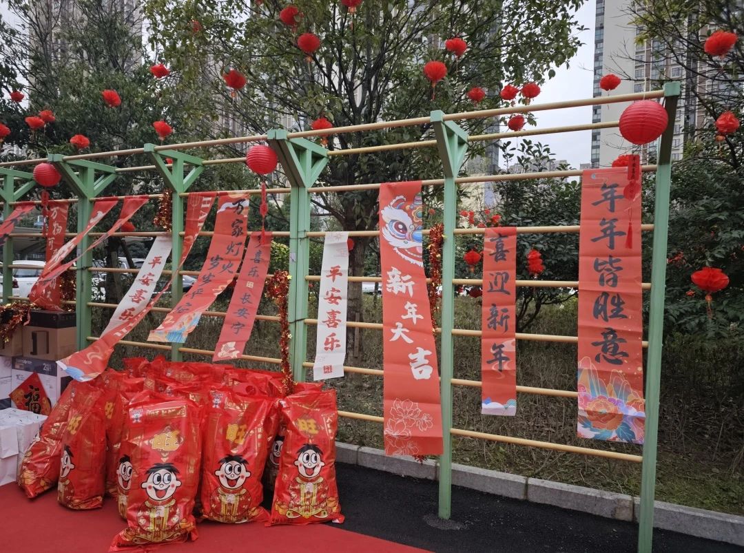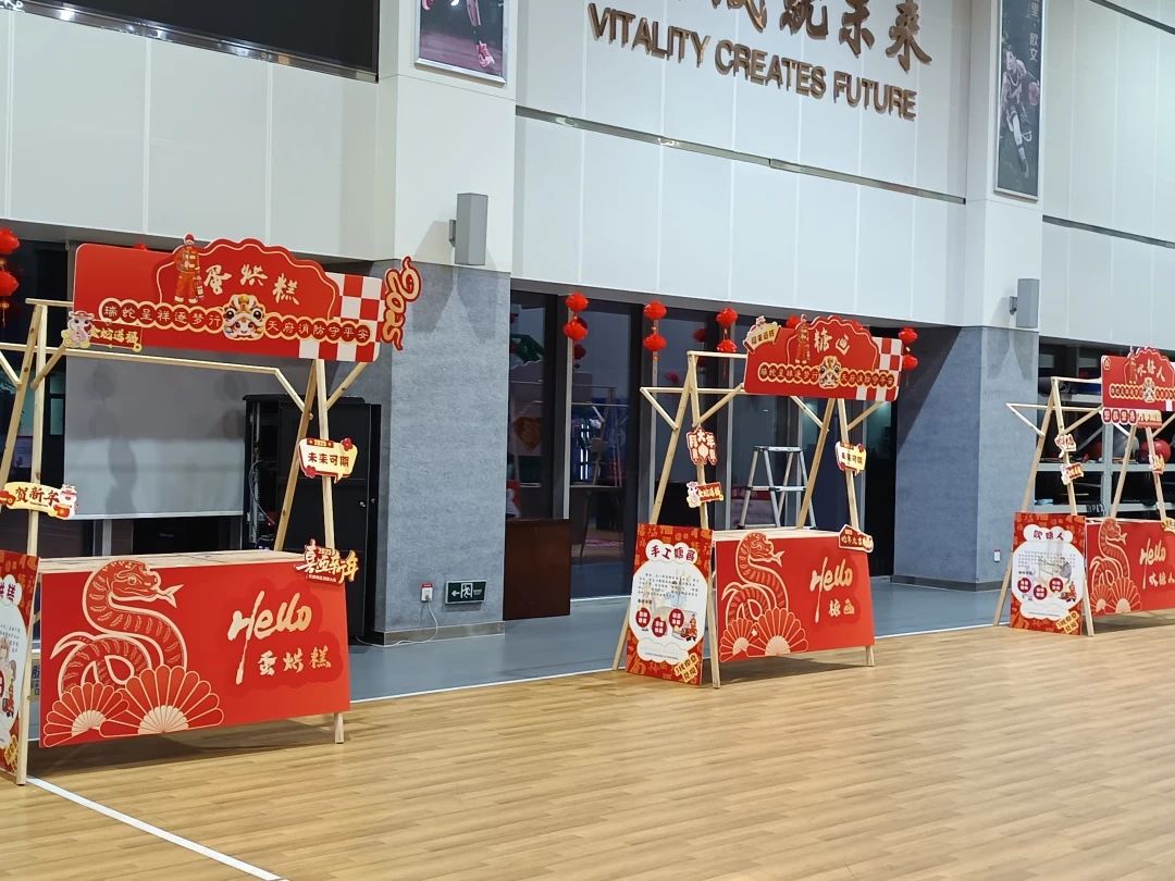 現場的每一個角落都充滿了濃濃的年味。紅燈籠高高挂起,中(zhōng)國(guó)結與挂布上繡制的精(jīng)美圖案交相輝映,為(wèi)節日平添了幾分(fēn)喜慶色彩。