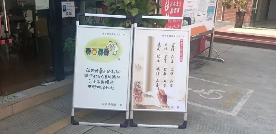 更換好的關于精(jīng)神文(wén)明建設噴繪布: