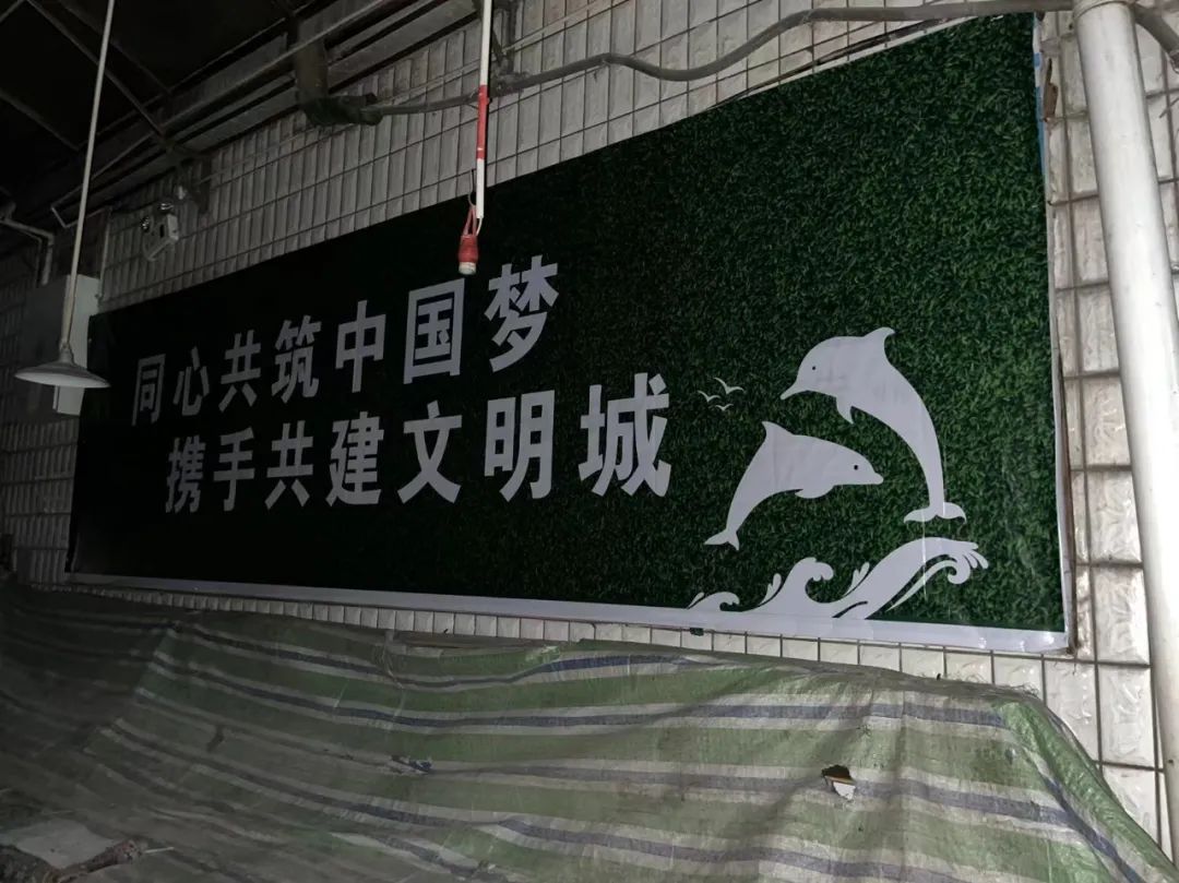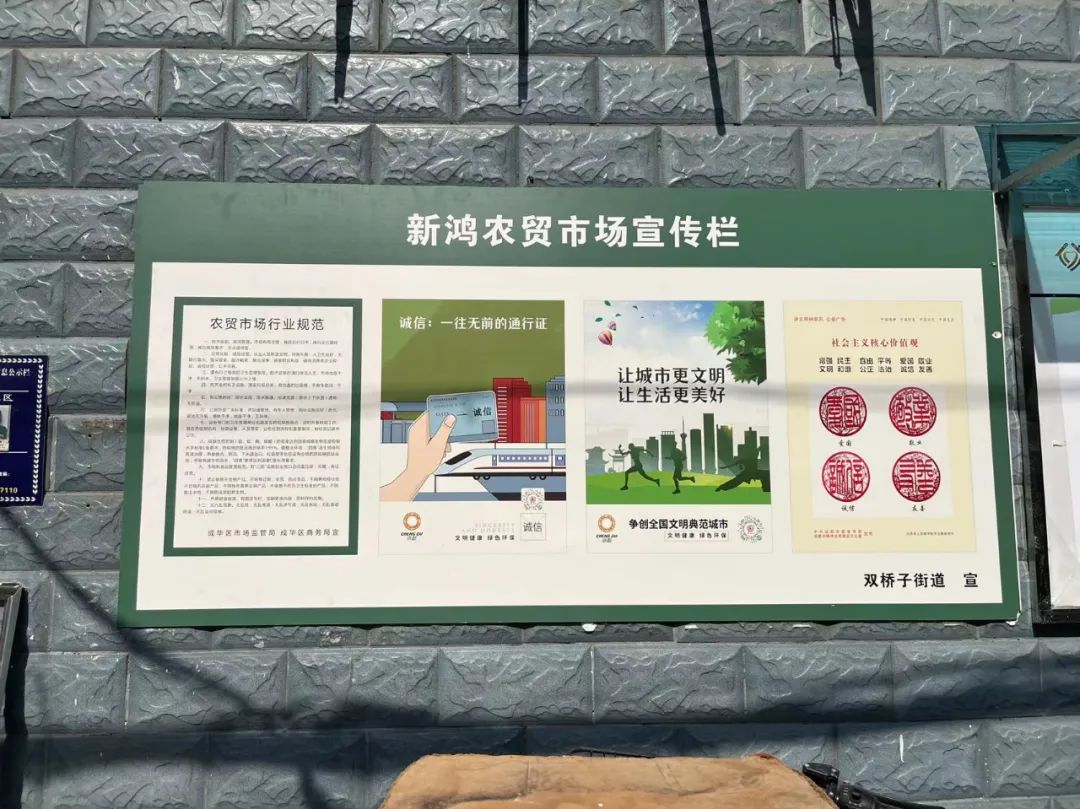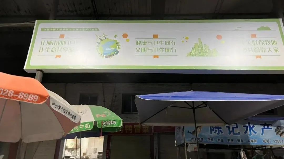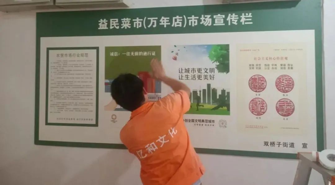 工(gōng)作(zuò)人員安(ān)裝(zhuāng)益民(mín)菜市宣傳欄