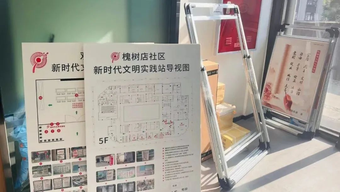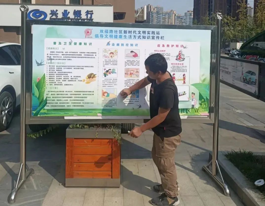 工(gōng)作(zuò)人員安(ān)裝(zhuāng)新(xīn)時代文(wén)明實踐站宣傳欄