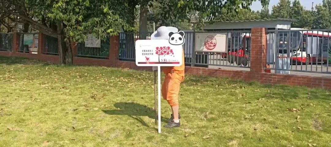 工(gōng)作(zuò)人員安(ān)裝(zhuāng)公(gōng)益廣告花(huā)草(cǎo)牌